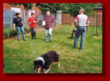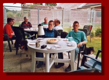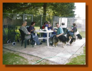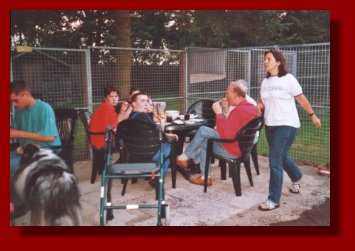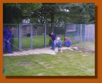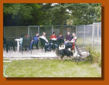 Die "Collie-in-Not-Heinzelmännchen" haben gegenüber ihren Originalen einen großen Vorteil: Sie sind sichtbar - bei Tag und bei Nacht! Als erstes wird von Christian I und René die Terrasse für den CiN-Geburtstag angelegt und sofort nach Fertigstellung mit Kathrins schandbar wohlschmeckendem Kuchen eingeweiht.