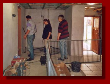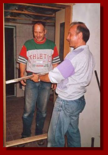 Die "Spezialisten" Uli und Horst sind verantwortlich für das präzise Einsetzen der Türen. Die zur Verfügung stehenden Arbeitsgeräte führen hin und wieder zu Heiterkeitsausbrüchen!