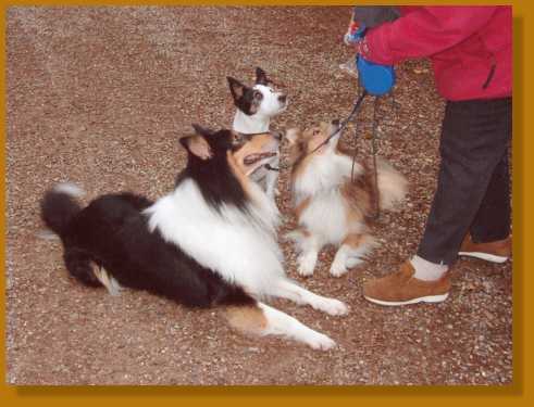 Benny mit Hundegeschwistern Jacky und Gina und Frauchen und Herrchen