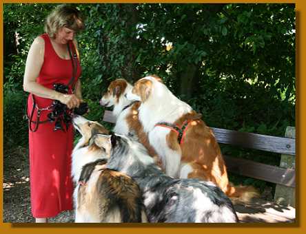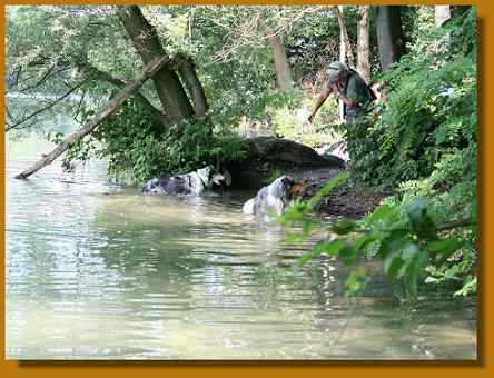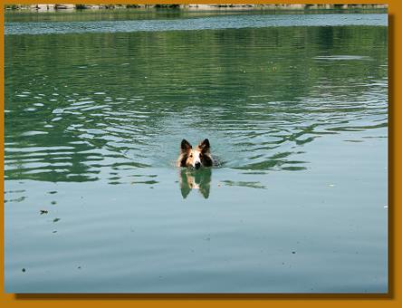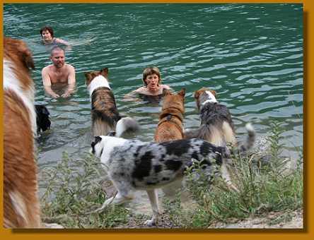 Abends haben Tiziana und Thomas samt badefreudiger Hunde noch ein Bad in der Limmat genommen. Selbst Lissy ging bis zur Brust ins Wasser - obwohl sie eine Woche vorher noch der Meinung war, daß Flüsse und Bäche ultra-gefährlich seien. Ja, das Wetter war am 1. Juli wirklich klasse. Thomas und Tizi wollten tatsächlich die Hunde ins Wasser locken, aber wirkliche Schwimmer sind nur der Sultan, Timmy, Arak und Laszlo. Die Mädels halten sich da lieber vornehm zurück :-))